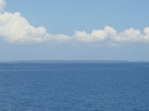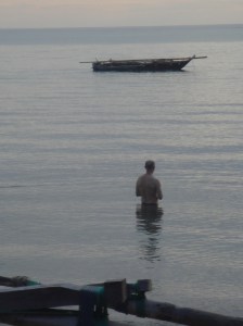 During our first few days one of our VSO colleagues on the island reported seeing a huge ‘Great White’ being brought in by the local fisherman to the market. ‘How do you know it was a Great White’, I enquired. ‘Well John’, came the reply, ‘I’m not too sure but it had bloody great white teeth and was as long as the lorry that dumped it’. A lorry. Swims are now preceded by half an hour scanning the water for tell tale fins. There’s one behind the boat. I know it.