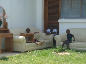The furniture arrives. Plus neighbour, plus two cheeky little buggers who are always trying to get into the house and at our secret stash of balloons. We’ve told them only those who can count to ten and back get a balloon. No chance. (update: the little sods came back, stood on the porch, calmly counted to ten then squealed ‘balloon’) Next balloon goes to those who can count from 1 to 25½  and back. In 3s.