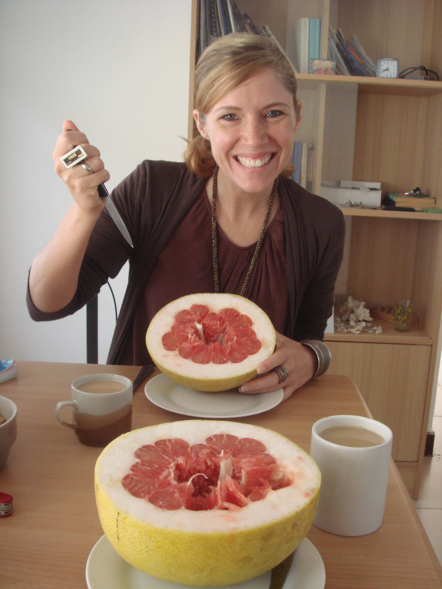Yes. As I’m sure you all guessed, a ‘balungi’ or grapefruit! About the size of your average devilishly handsome head and tastes devilishly delicious too. A bit like a sweet  grapefruit. While Nadine opted for the ‘hack your way through it with a knife’ option I went for the more visceral ‘get your head stuck in there and start chomping’ method.