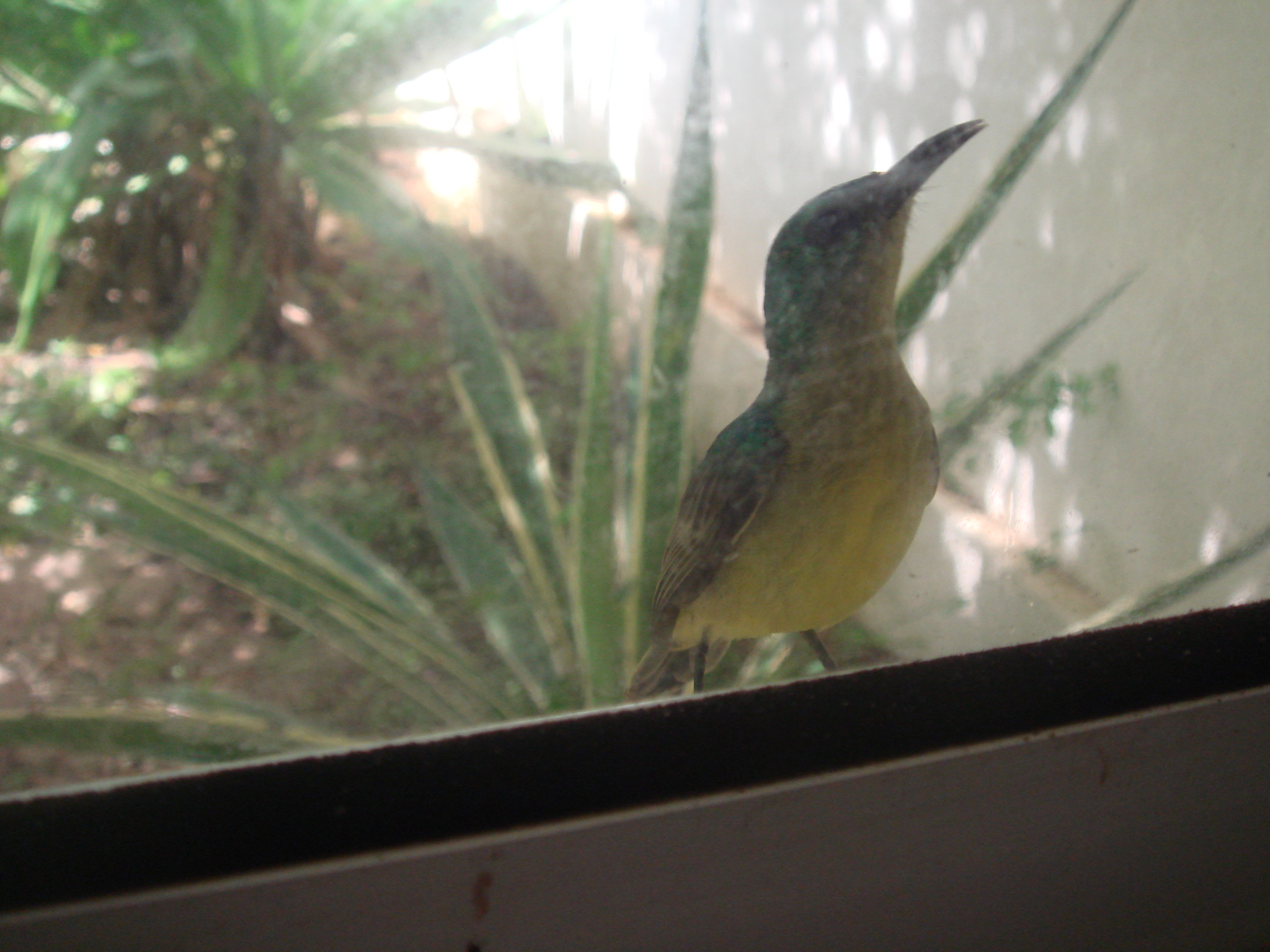‘Billy whizz’ isn’t actually part of our household menagerie but a friend’s down the road. Daft as a brush. Thinks his reflection in the window is some other sun bird and spends hours doing his mating dance and trying to get off with it. So a gay, daft sun bird.